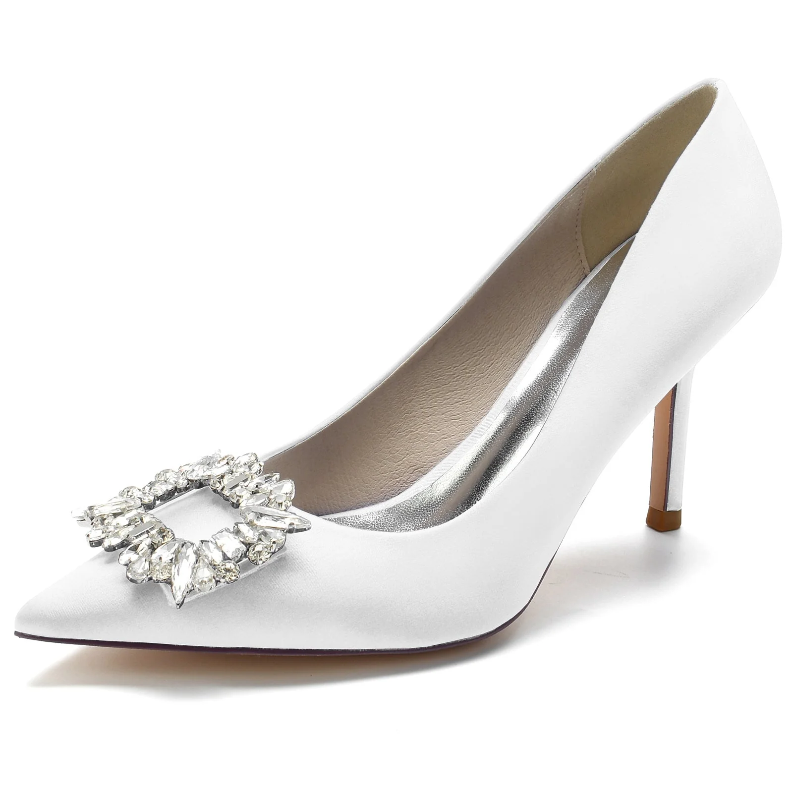 Women’s Wedding Shoes Square Rhinestone Stiletto Pointed Toe Bridal Shoes
