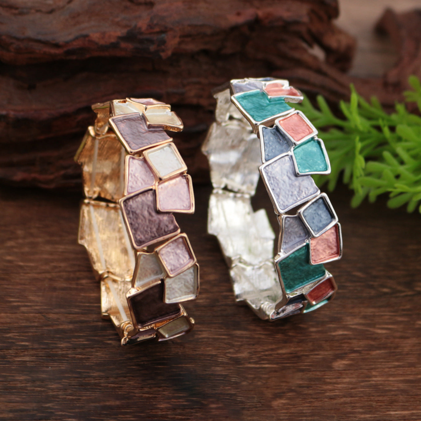 Delicated High-End Enamel Geometrical Square Alloy Stretch Bracelet