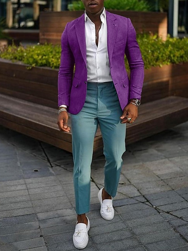 Men’s Fashion Casual Plus Size Regular Tailored Fit Solid Colored Single Breasted Two-buttons Blazer Jacket