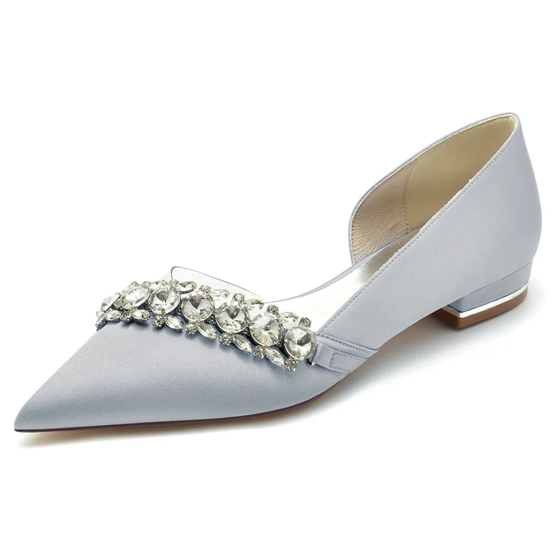 Women’s Wedding Shoes Champagne Pointed Toe Low Heel Luxurious Rhinestone Bridal Shoes